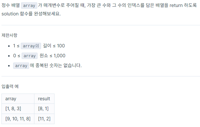 return new int[]{max, maxIndex};